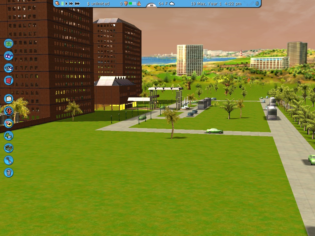 I already have the hotel (just have to add a few details), a pool for the hotel; part of the Plaza and the first station of the monorail.