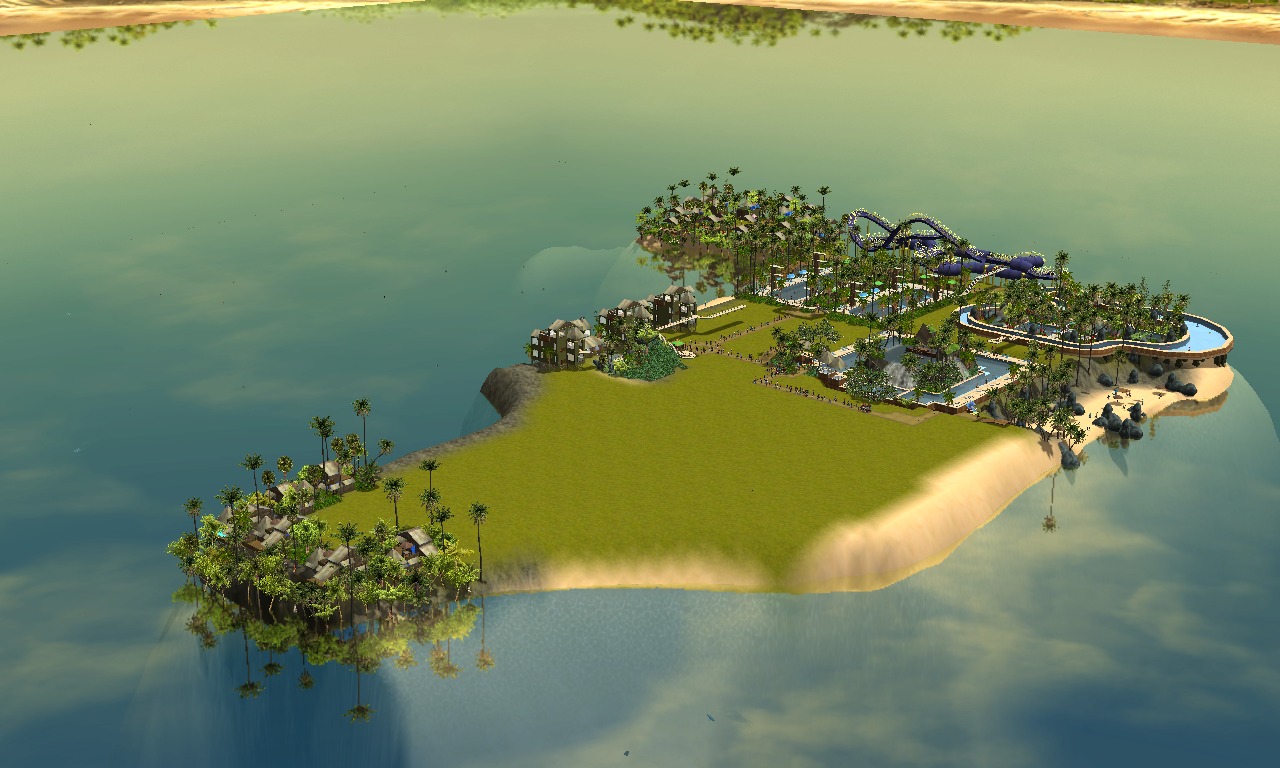 I have a park that i am working on but am not sure if I should put it up for download because it has a LOT of custom scenery required. It will most likely be along time until it is totally completed. I guess I can make updates every so often and share how my work is coming. Le'ale'a is Hawaiian, if you couldn't guess. It means fun. So the literal translation of Le'ale'a Island is fun island. A perfect name for a water park!!
