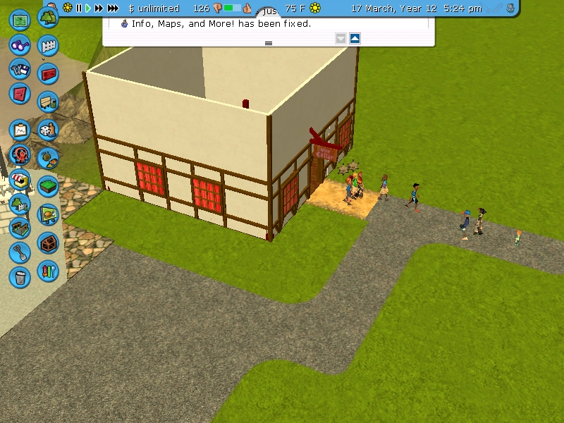RE: Disney's SMALLTOWN - gdmuscle - Jun 24, 2007 Hey there, Great Job, I know how hard it is to get those pieces for the custom objects to fit right but you managed to get them to work. I've used tons of custom objects myself and the bigger the park gets boy does it slow things down. Hope to see the finished park uploaded soon. RE: Disney's SMALLTOWN - flamingojoe - Jun 30, 2007 Ok it's probably been a week since the last update. But here one is: The walkway into the castle... I know that wasn't much i'll have some more up real soon. RE: Disney's SMALLTOWN - flamingojoe - Jun 30, 2007 Ok! The first FantasyLand Building is going up! It's the "Dreams" Wine Shop. They feature 150 signature wines including 5 special ones only available in SmallTown! The layout. (note the stained wood) An incomplete building pic. The entrance! Finally its complete! (we'll place flowers around later) Looks like somemore buildings are going up! (one looks like it might hold a ride!8D) Next time i'll show you progress on the other side! RE: Disney's SmallTown - Schaffie - Jul 1, 2007 Looking good