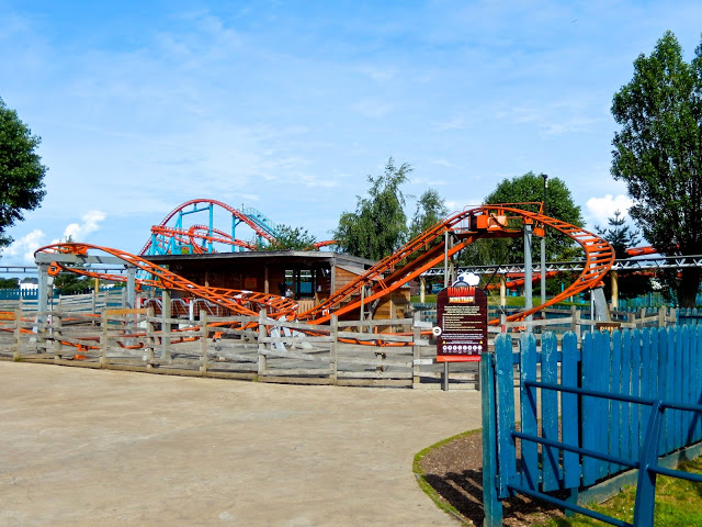 and it was a very cool experience to ride it. Pretty fun ride, don't think its the best Euro-fighter, but certainly not bad at all! Then I walked over to Gotham City, and it was extremely cool. I first went to Mind Bender, the Schwarzkopf loop coaster of the park, and I saw it's an ACE landmark! It has a really pretty area, and there was again no line, the crowds that day were great. And I always have to go on Batman The Ride! I always like the ride, all clones of it are freaking intense. After that I tried the new tilt-a-whirl Harley Quinn's Spinsanity, and it's pretty basic. After that, since Joker's Chaos Coaster was having problems, I went to Monster Mansion, the park's awesome dark ride! After that, I rode Wil-E-Coyote's Canyon Blaster and the Dahlonega Mine Train, which are both hurlers :P Lol no. After that we got a ride on Sky Screamer, which isn't really too scary but fun like the others, and in my opinion better than the Windseeker at various Cedar Fair parks. After that, I went to Metropolis to ride Superman Ultimate Flight. Not a bad B&M Flyer, but I got stuck on the brake run after the roll. Spent more time there than I waited in line lol. After that I got on Great American Scream Machine. One of those wooden coasters that I really like, and it's pretty smooth for 1977, or whatever year it opened. After that, I came to Acrophobia and for once I got scared on a Drop Tower lol. Then I went to the Cyclone to investigate the area, possibly to see maybe some signs of RMC, and didn't really see any markings, which is bad because it is a rough coaster. The only smooth part of it was the drop. I pretty much ignored Ninja, because just looking at it gave me a headache
