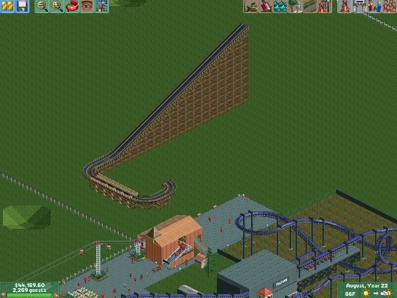 Welcome to the year 2000, from everybody at Aspen Lake amusement park! To celebrate the new millennium, Aspen Lake unveiled Locust, a 130 foot B&M floorless coaster. This groundbreaking coaster is set deep in the woods as its name suggests, and sends passengers on a 63 mph journey through six inversions- the fastest coaster in the park! Locust also features a 100 foot loop! In other news, Rumbling racer was spotted testing in the summer! Also, Aspen Lake updated a part of the entrance for 2000. Here are some pictures taken during the year.