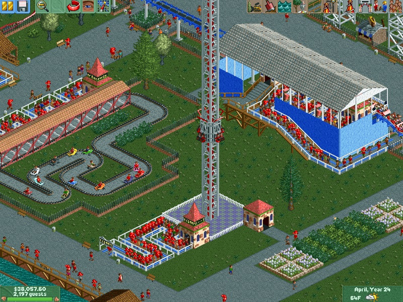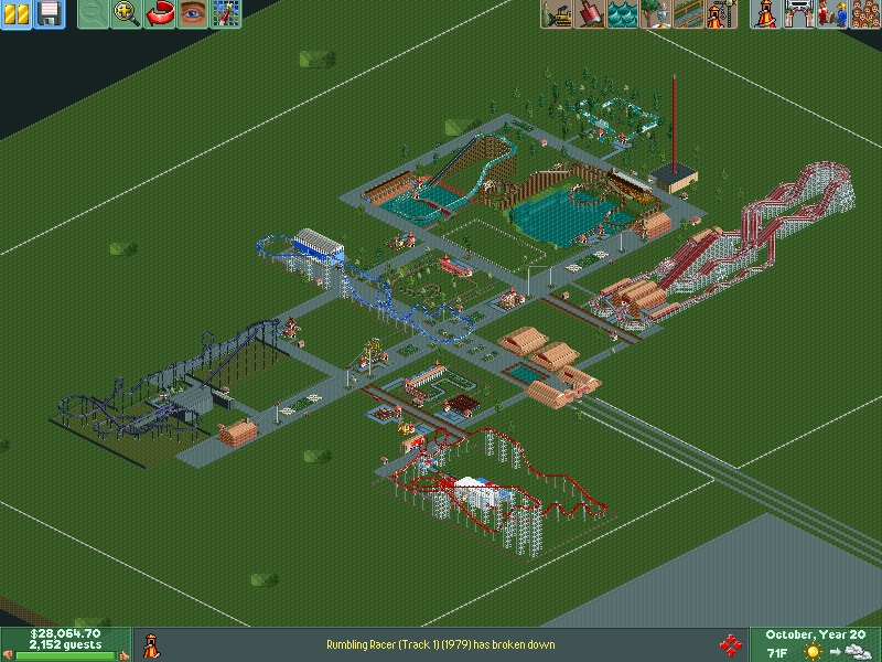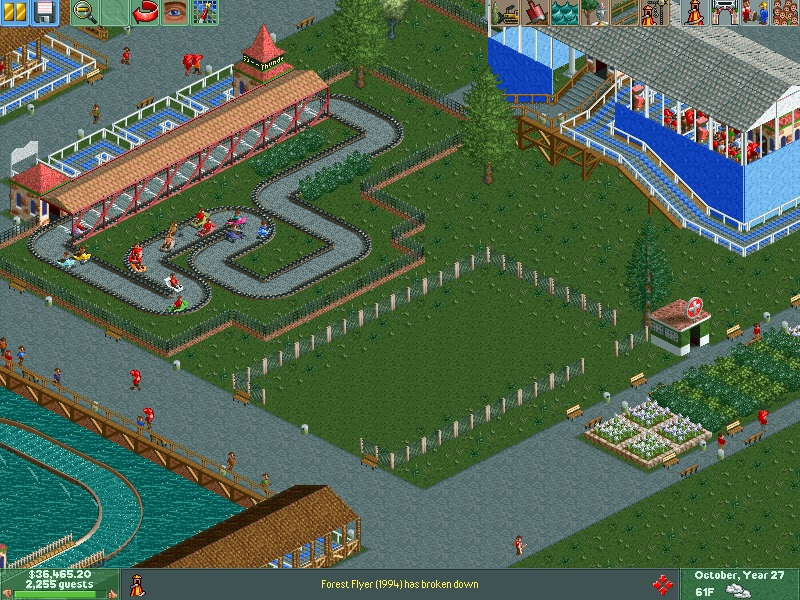 Welcome to the year 2000, from everybody at Aspen Lake amusement park! To celebrate the new millennium, Aspen Lake unveiled Locust, a 130 foot B&M floorless coaster. This groundbreaking coaster is set deep in the woods as its name suggests, and sends passengers on a 63 mph journey through six inversions- the fastest coaster in the park! Locust also features a 100 foot loop! In other news, Rumbling racer was spotted testing in the summer! Also, Aspen Lake updated a part of the entrance for 2000. Here are some pictures taken during the year.