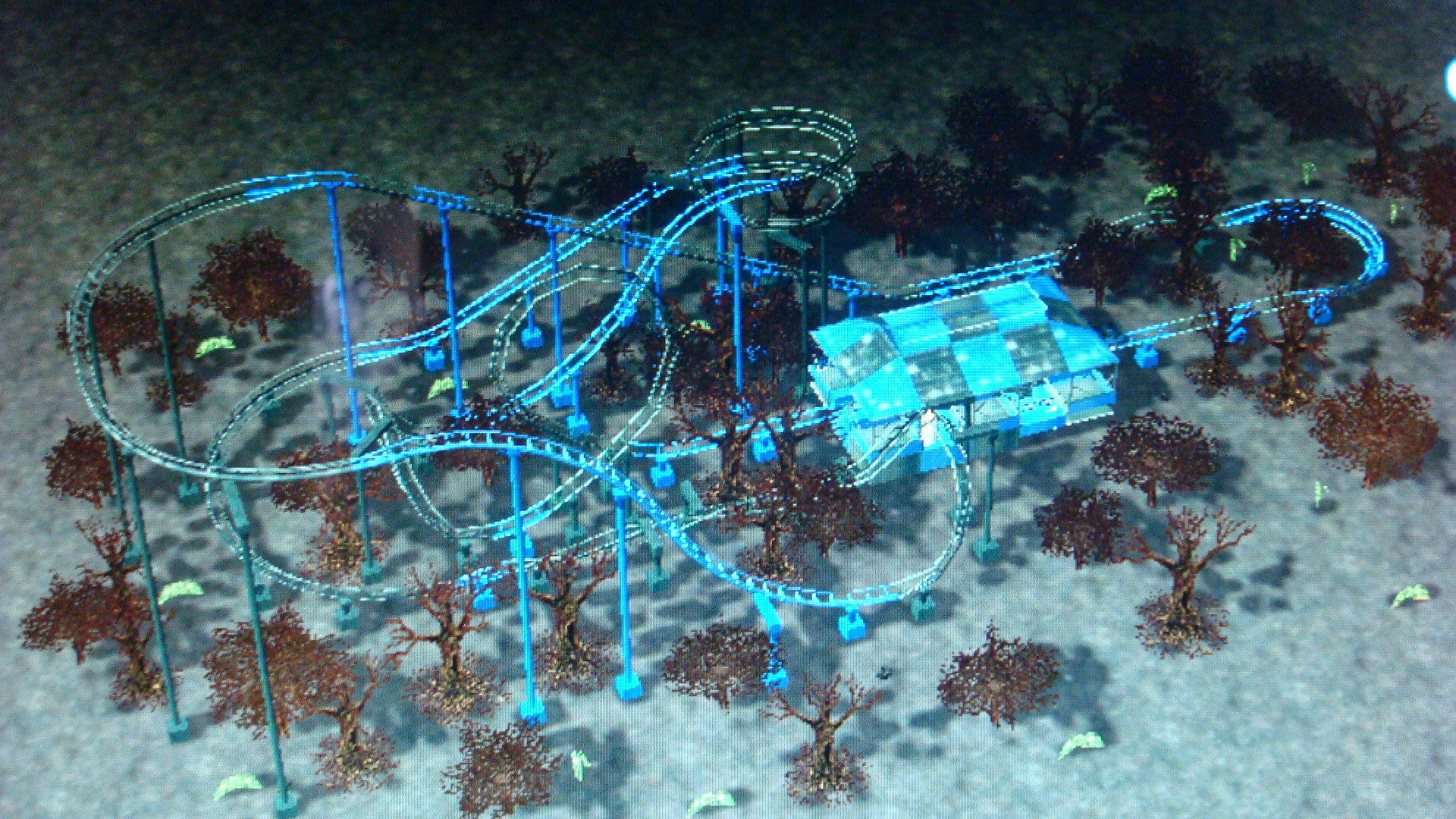You could put Palm trees around it and make it a beach themed ride, or put Evergreen trees around it to make a winter themed coaster.