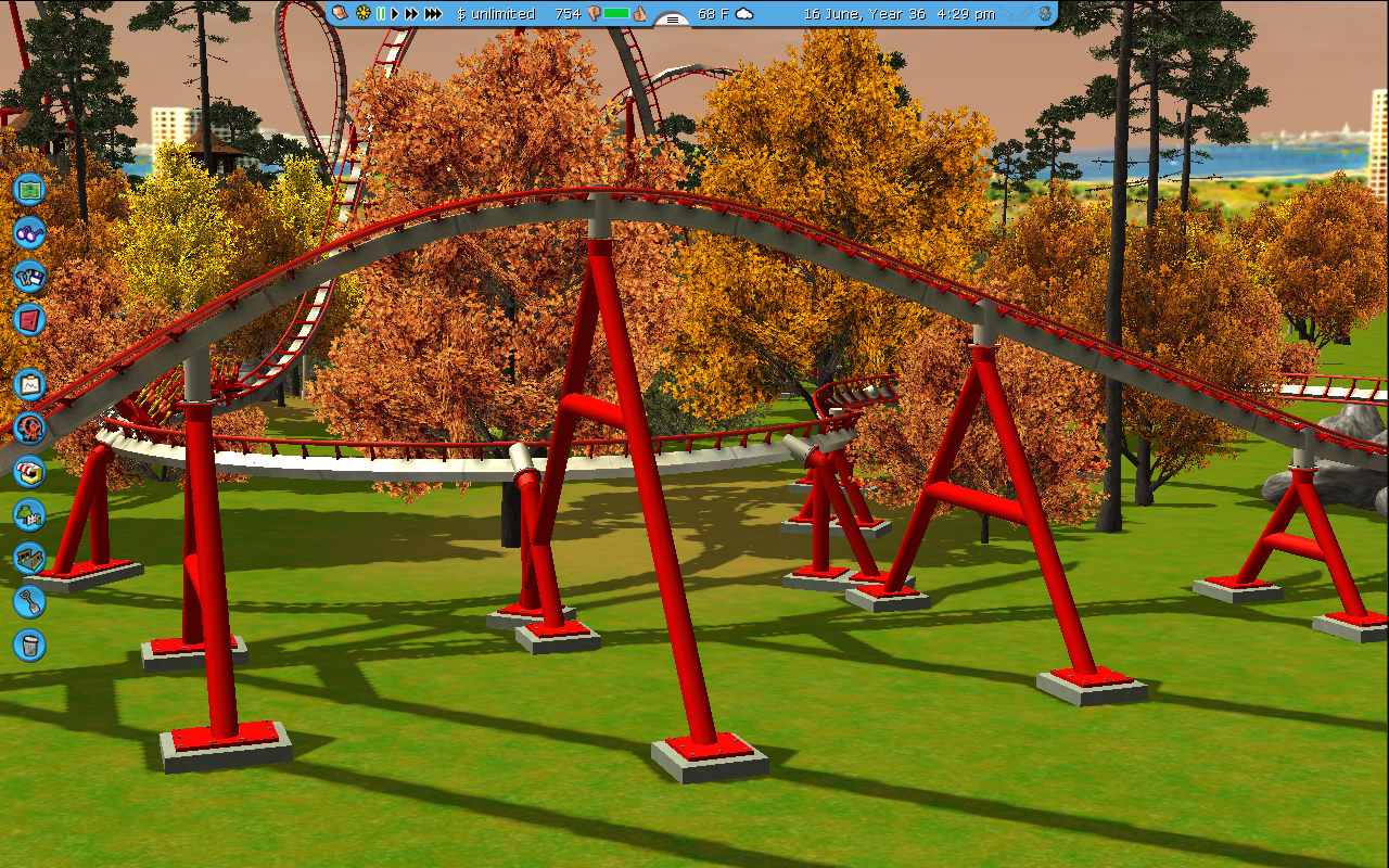 Anyways, it took a little longer than I expected to, but the first B&M Coaster has been made! Replacing the waterpark I was planning to make, it is tucked in a corner pretty well, just like Rush. Anyways, hope you like it, the next update should come in about 3-4 weeks, and thanks for looking at this! (Sorry for so little pictures this time, they were a lot with over 2 megabits, so I couldn't upload them. I'll try to get some more on post 3