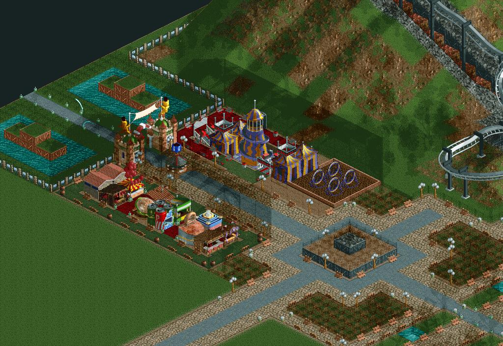 Additional i shorten down the pathway from Ardy, to have enough space. Sry Ardy, but the whole Terraforming takes so much time in RCT2 that i dont want to re-build everything on maybe 4-5 tiles away from the Entrance