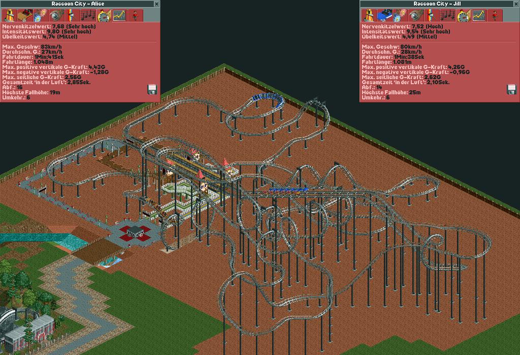 Both coasters are really close timed, so they runs in "syncro-mod". But they doesn't have near-collission parts or other diirect-interacting. They are build for an different experience along a big City-Themed area.