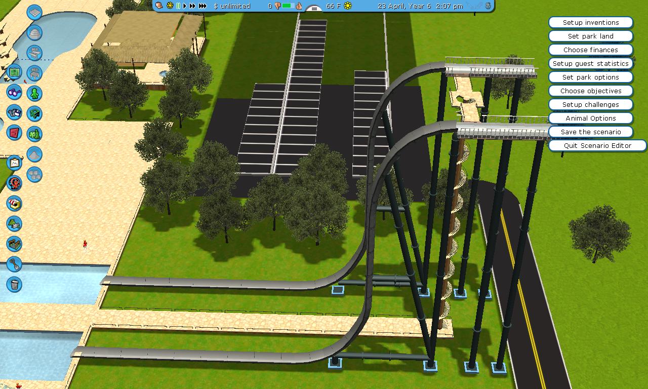 Due to having less space than excepted, forest trail will be unable to host all rides originally planed. 3 water rides have been cut down to 1, 3 roller coaster will be cut down to 2, and 5 thrill rides/junior rides will hopefully stay the same at 5, no less than 3. Look for updates on the next coaster starting tomorrow morning. Also, a road leading to the back of the park where I hope to add a small water park. The road will be right outside the fence to the park. Updates will come with coaster updates