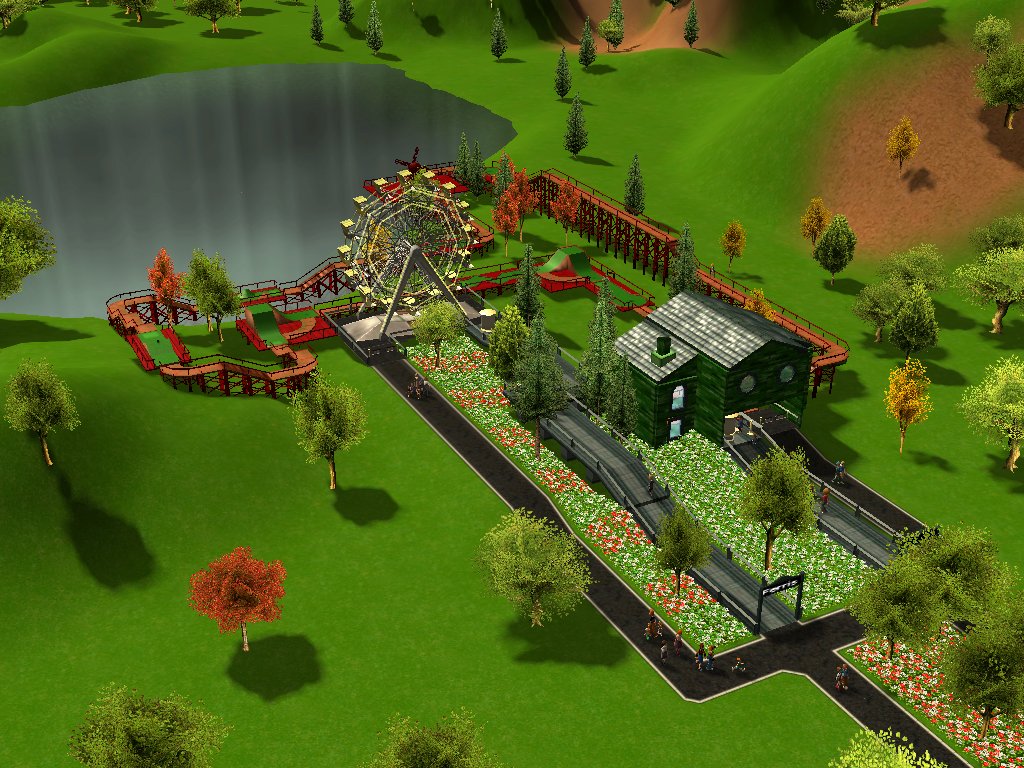 I have 22 new screenshots for you. These screens depict the entire park, all of it, in a whole. I plan on releasing the actual park later this week, but for now, screenshots! By the way, I just named the woodie, "The Big Woodie." It isn't that big, but I couldn't think of anything else