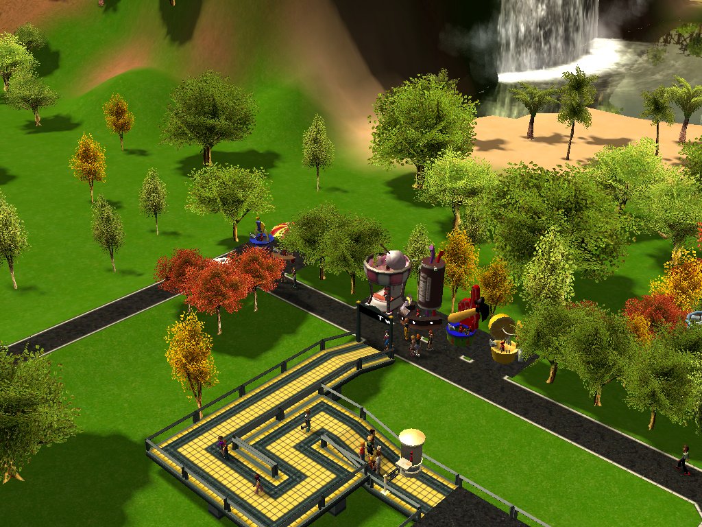 I have 22 new screenshots for you. These screens depict the entire park, all of it, in a whole. I plan on releasing the actual park later this week, but for now, screenshots! By the way, I just named the woodie, "The Big Woodie." It isn't that big, but I couldn't think of anything else