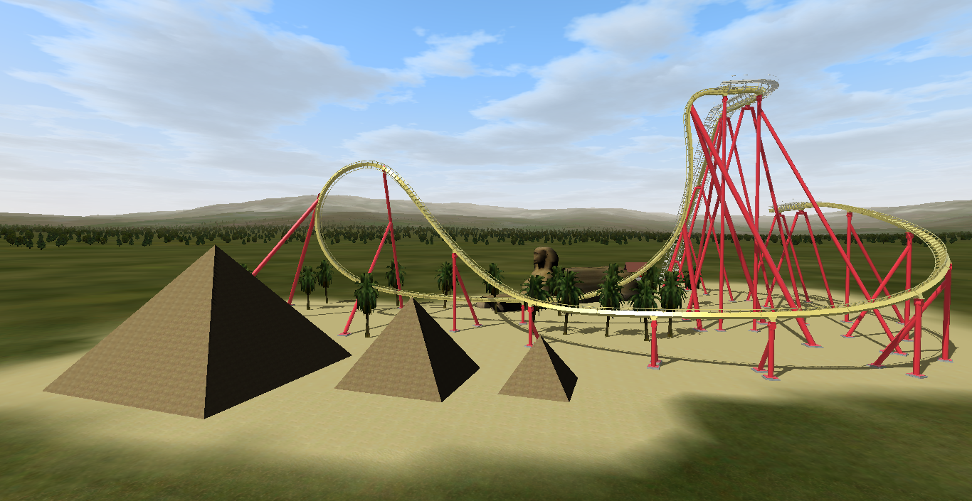 I decided to place the coaster in a huge temple (Karnak) which gives it more of a ancient presence.