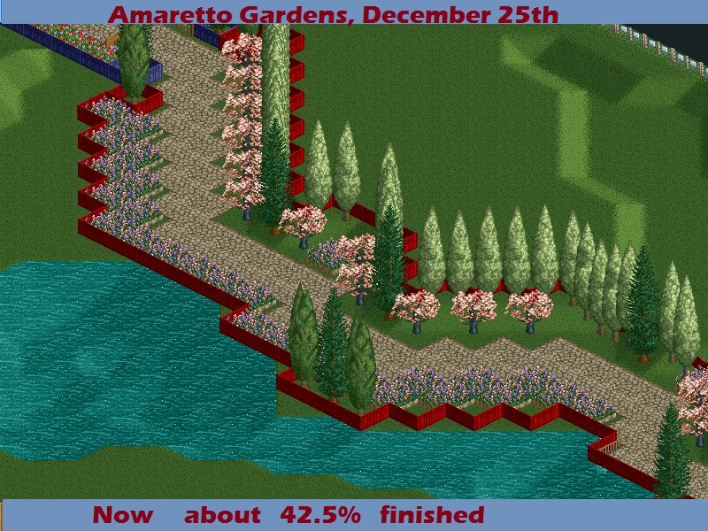 Okay, so I did a bit of work today. I did a bit more terra-forming, and expanded the park from 115/130. (I am taking it slow so I don't screw it up). I put down a couple buildings, put fences and flowers all over the park.