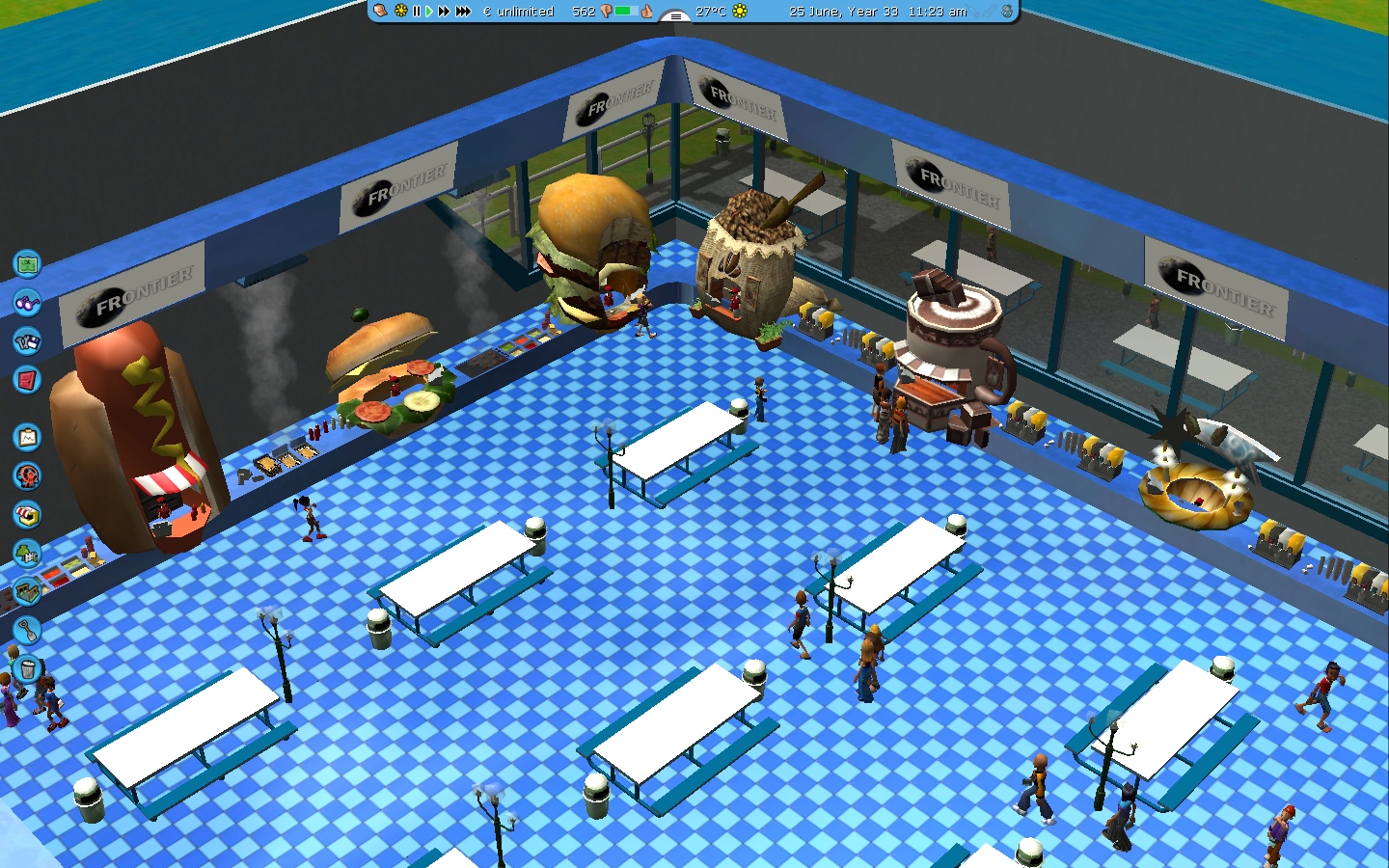The fast food works both day and night since it has all the necessary lights.