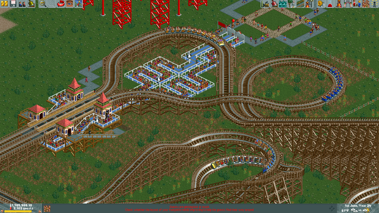 I'm a RCT2 player, and what you have, is indeed a good start. You musn't forget to scenerize it, and terraform greatly.