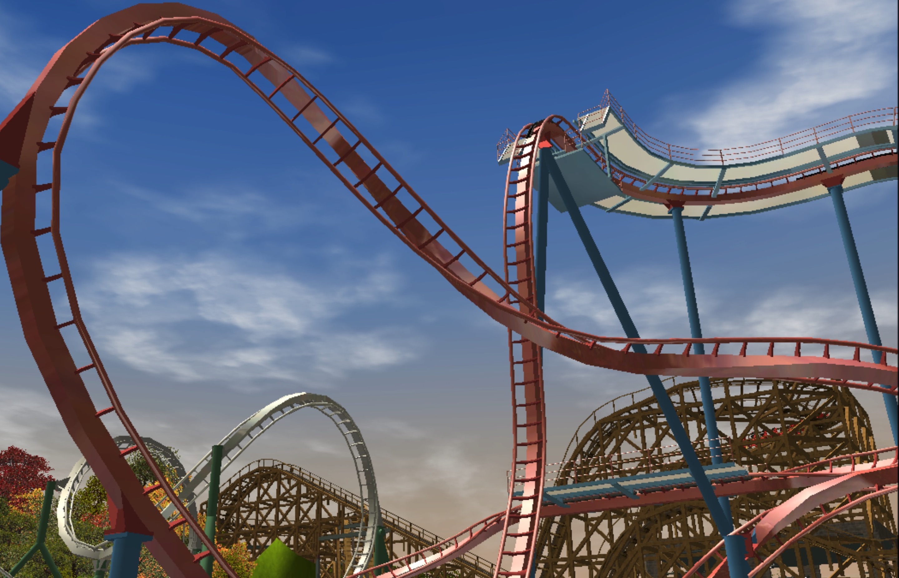 I am going to try something new with this project.  I am going to let the RCT.go community decide everything about this coaster.  I have a general theme for the ride, a layout, and that is about it.  The theme is the alps, or an alpine village, and it stands at 101 feet tall with a 98 foot drop.  It features two inversions and is very compact.  Here are some pictures of the ride.