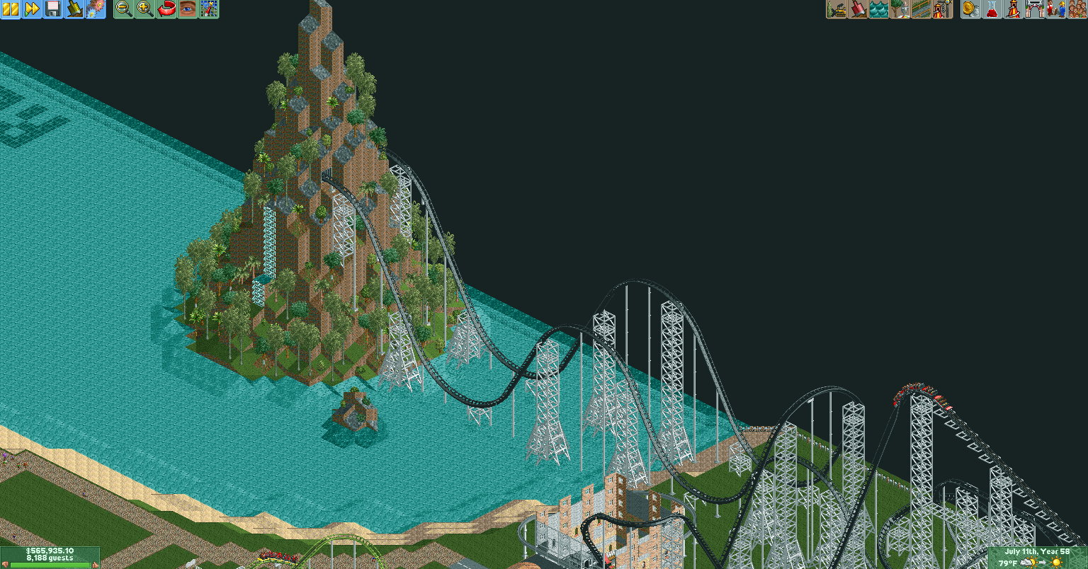 I figured today would be the best time to announce this as today marks 5 years since I signed up on RCTgo. I have been working on a massive max size mega park in RCT2 on and off for probably around the past 10-12 months.