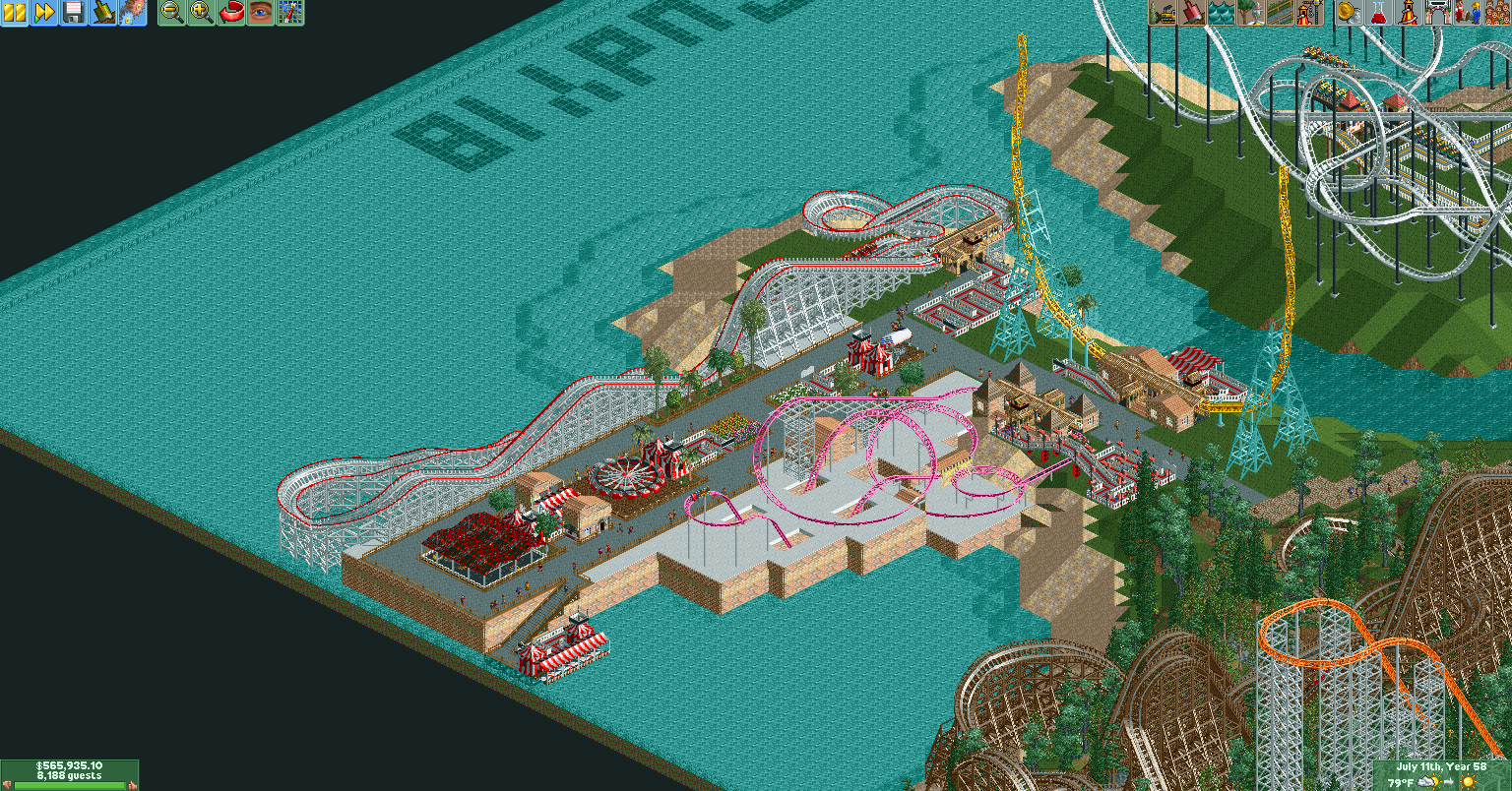 I figured today would be the best time to announce this as today marks 5 years since I signed up on RCTgo. I have been working on a massive max size mega park in RCT2 on and off for probably around the past 10-12 months.