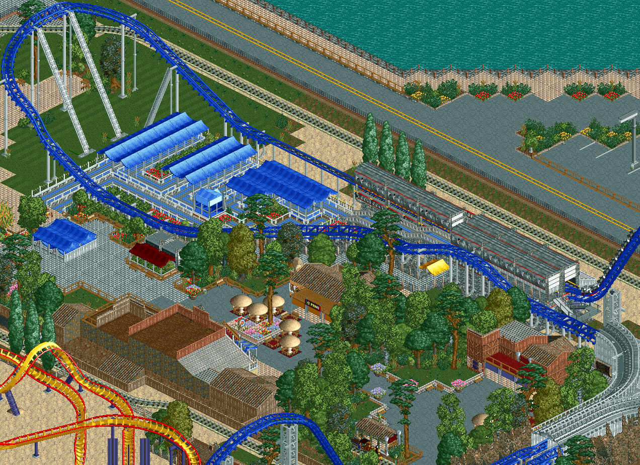 in fall 2018 i started working on a recreation of millennium force in RCTLL (1+expansions) and although there isnt much to show yet and updates will be slow, ive decided to track my progress here. ive started planning a full recreation of cedar point across four 126x126 maps but as of now only one map has been built on which focuses on millennium force and the areas around it. heres what i have finished so far