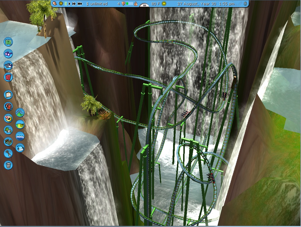 I Have created a park mostly full of waterfalls, not sure why just something diffrent to do. all the waterfalls are in place but i cant work out what theme to go for on the park. Any one have any ideas as to what would work?