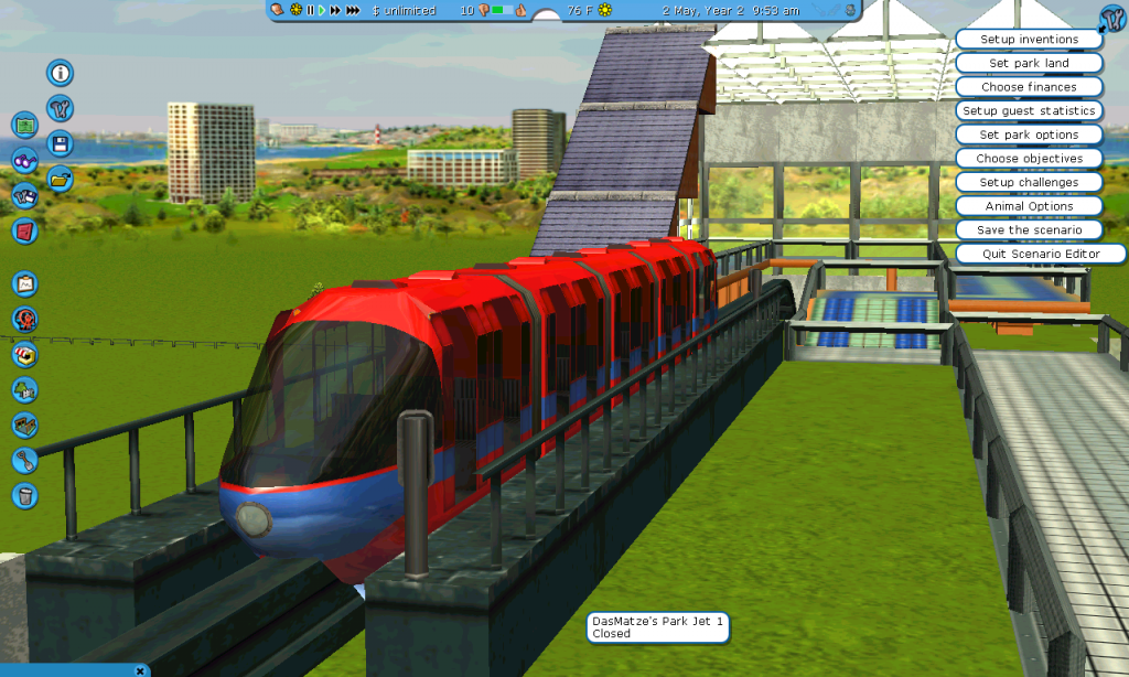Here is an update to my new park, this is just the entrance so far and a monorail station. the monorail will be the last to be finished.
