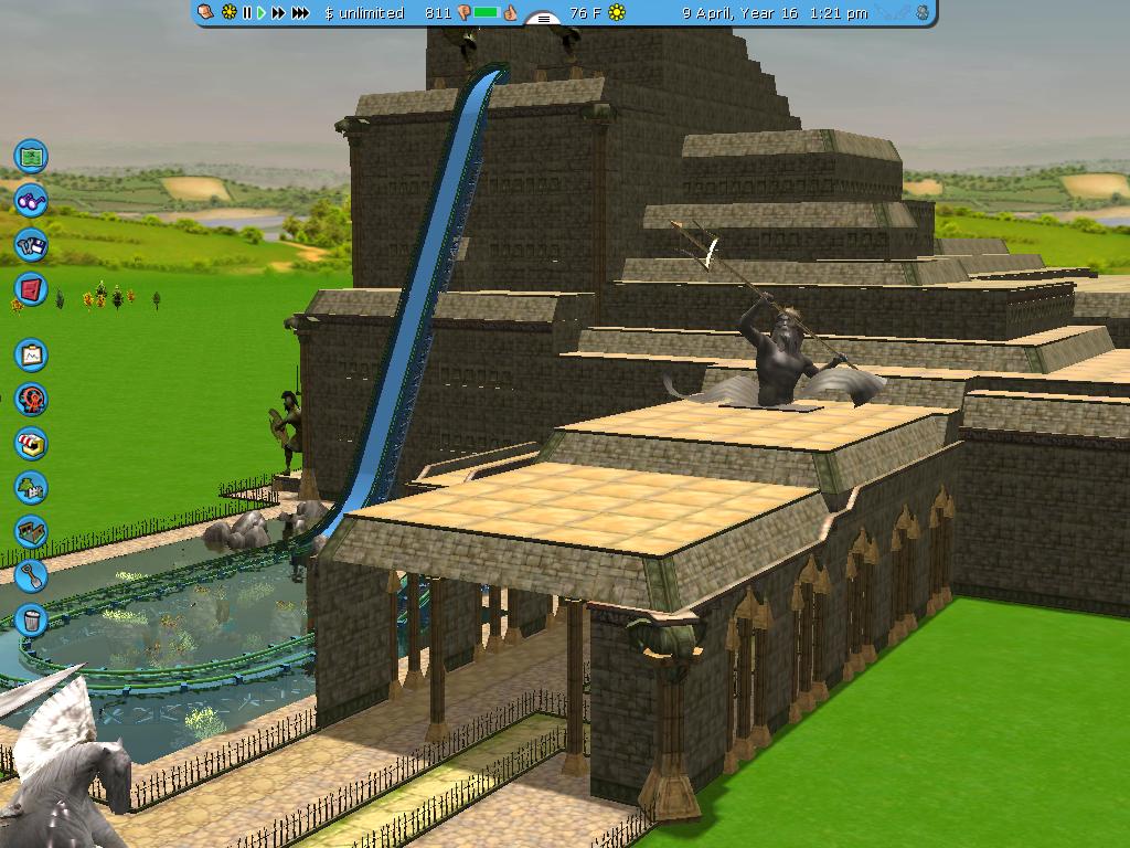 Ok, right now i am working my butt off on a HUGE Atlantis themed ride. I will be on vacation for two weeks so if I don't finish it tonight, you won't be able to download it for a while. Here's a screenshot of my current progress, I still have a lot of scenery to finish building, but once it's done it will be ready to be downloaded.