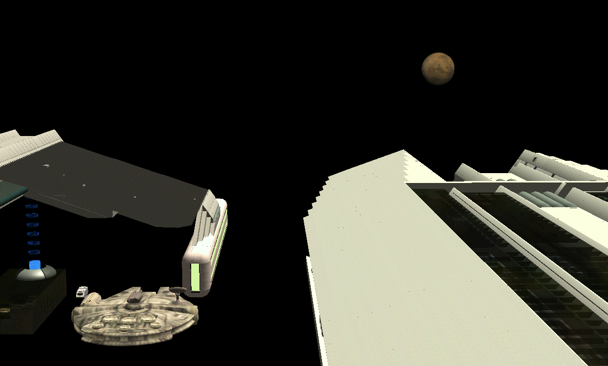 I know, because of the sheer size of the spaceships I had to rely mainly on Expo 3000 wall set. Those huge inclined and diagonal beams allowed me to build big and faster than Spaceworks, for example, altough this was useful for the interior. But with time, I might be able to add little details here and there on the exterior shell. I have to go through the entire library of custom scenery available on the Net, I suppose.