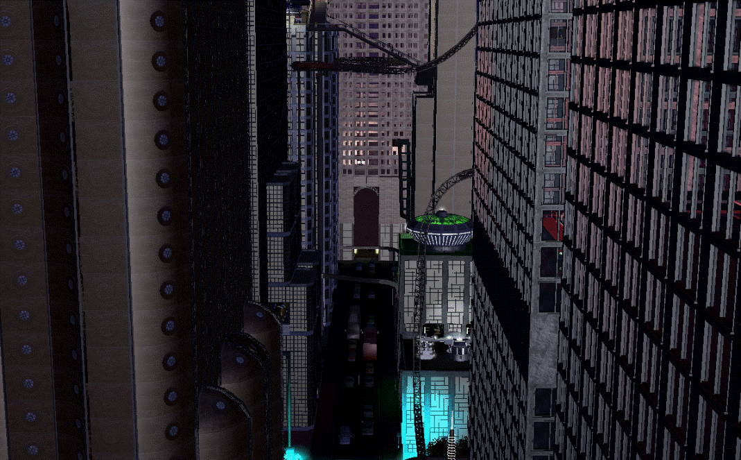 The concept was striking: In a far future, on colonised Mars, humans recover data from the 20th century life on earth, including images of cities. Not having a clue what was the actual use for these strange, tall buildings, they decided to create a theme park filled with skyscrapers, industrial area, pollution, etc, and use all these weird 20th century features as base for thrill rides.