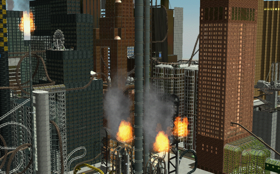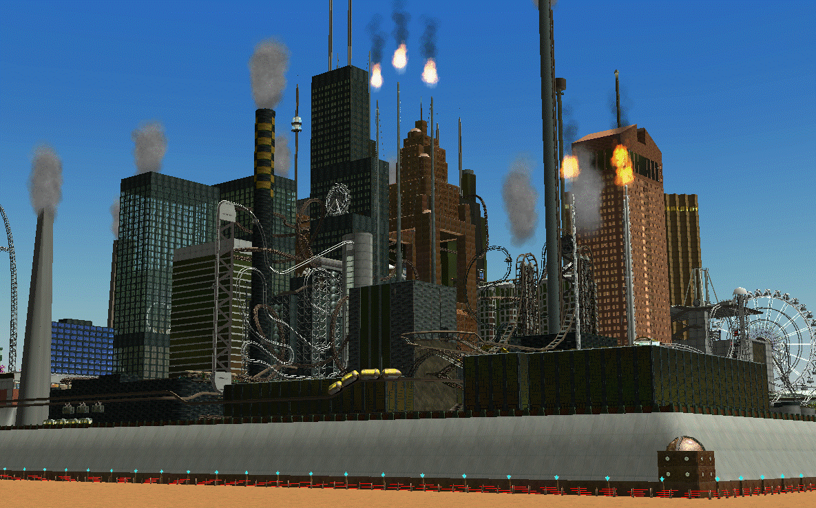 The concept was striking: In a far future, on colonised Mars, humans recover data from the 20th century life on earth, including images of cities. Not having a clue what was the actual use for these strange, tall buildings, they decided to create a theme park filled with skyscrapers, industrial area, pollution, etc, and use all these weird 20th century features as base for thrill rides.