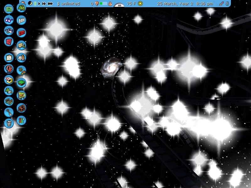 I have recently been working on perfecting space mountain, because nobody liked the old one i made so I decided to make it better. Sadly, it was very frustrating, and i really hated the work that was needed. So I decided to make a brand new space mountain. This one i have been working on for a week now, and I am almost done. I have plenty of screenshots for you guys to look at, and I will post the download after I add some finishing touches. So take a look at these shots!